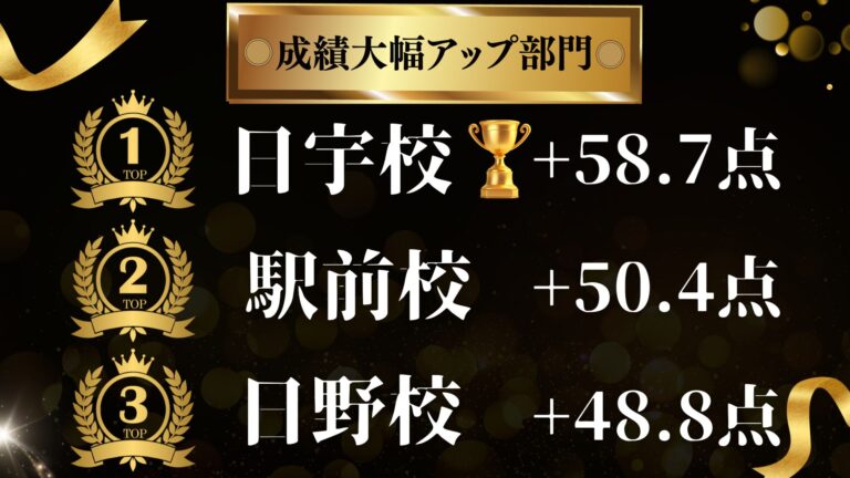 「日宇校中3県一斉模試成績アップ部門1位!」