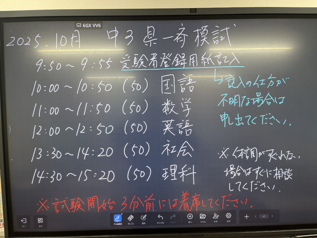こんにちは、日宇校の安田です。今回は、10月19日(日)に開催された「秋期県一斉模試」についてお話ししたいと思います。